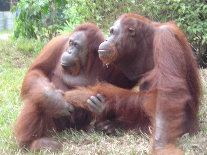 The more human contact orangutans have had (usually during rehabilitation),