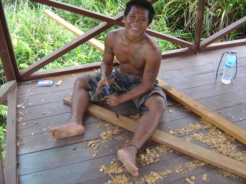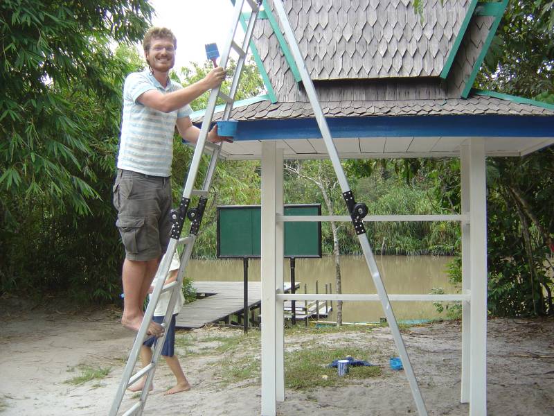 Over the 6 weeks, we worked on a number of smaller projects. Most days there were a number of things going on - sawing, chiseling, nailing, painting, repairing orangutan-damaged buildings, replacing old planks with new on the jetty.