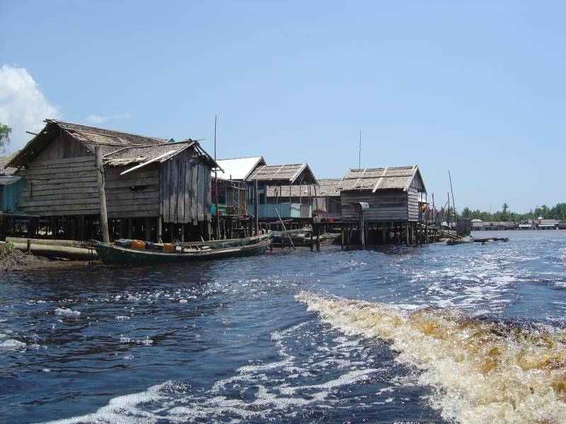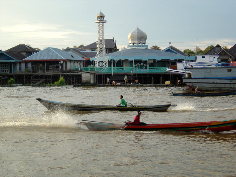 After 9 bumpy hours (the Indonesian roads were poor compared to those of Malaysia) we arrived in Pontianak where I found a helpful local chap who showed me to a cheap hotel, an ATM (stock up on cash while you can as ATMs are hard to come by and often don't work) and a superb Malaysian restaurant serving fresh seafood and vegetables fried in a giant wok.