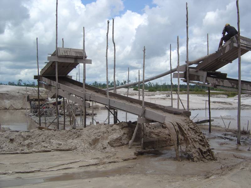 Once an area has been logged, it is vulnerable to palm-oil plantation, agriculture, settlement or mining. One day we took a klotok upriver to visit the Aspai goldmine. Mining has taken place here for many years (after a mining concession was granted)