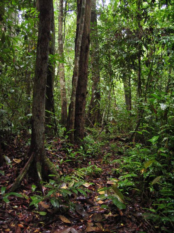 Barbara and I woke at 4am and trekked into the forest guided by Sebri and Herman. The guys had been searching for three days and finally had success the day before when they came across Michelle and followed her until she nested (orangutans build nests by bending trees together and making a stable platform on which to sleep).