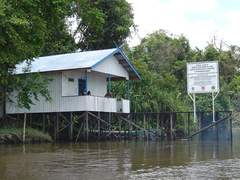 Guardpost's typically have two rooms, a simple toilet and a deck outside. They are located in strategic positions around the Park (often on rivers) so that they can be manned night and day by Orangutan Foundation staff (usually local Dayak people) who track activity on the river and go on patrols into the forest listening for chainsaws. If I remember correctly, there are 17 guardpost's around the Park and more are built when conditions allow. They have been successful in catching illegal loggers and send a clear message to would-be loggers that they are being watched.