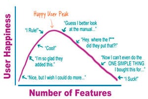 Every experienced web developer will have discovered that too many features leads to confusion for users. This happy user peak chart helps you visualise it. However, there are ways to …